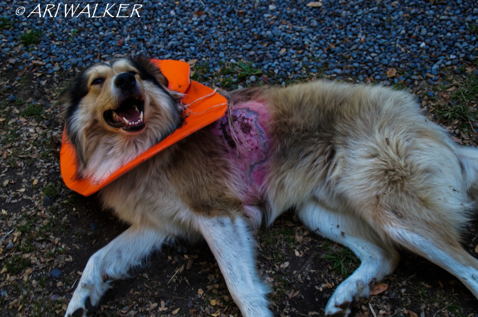 | Salto the kayak hostel guard dog happy as ever regardless of his wounds! |